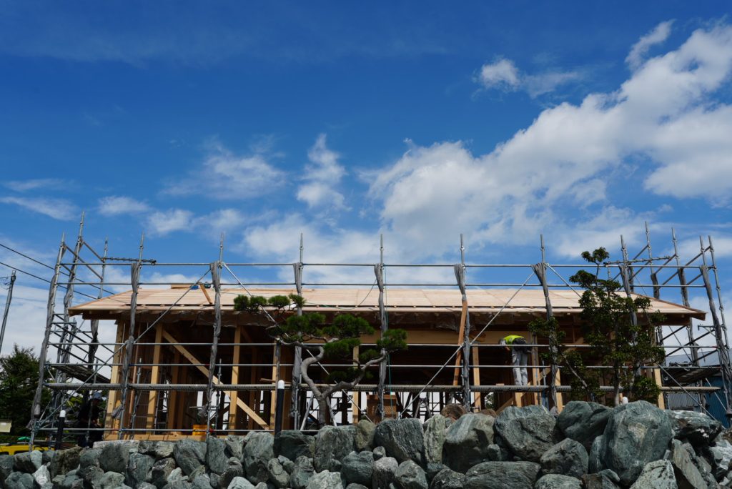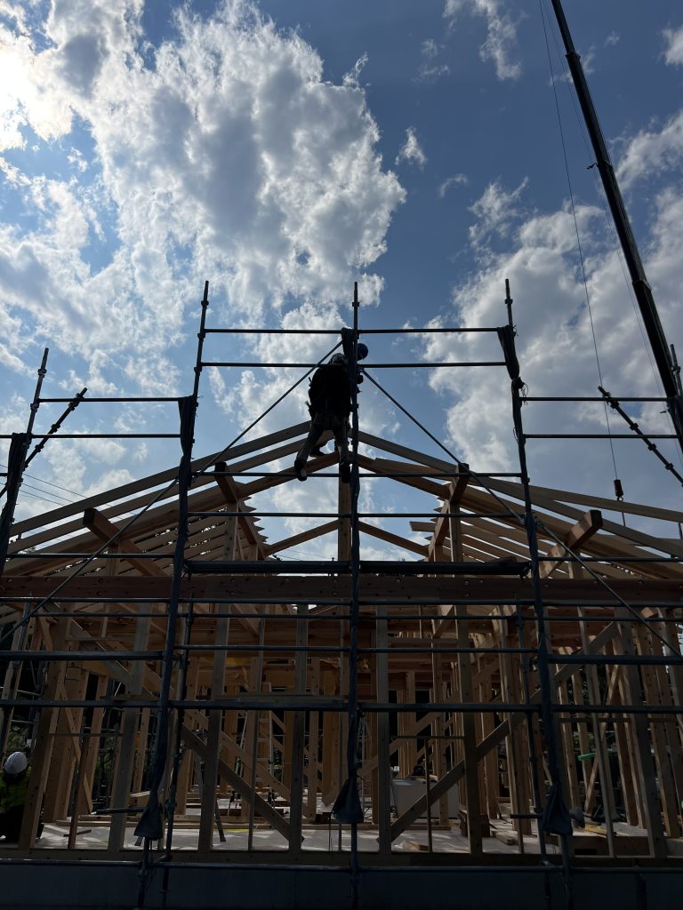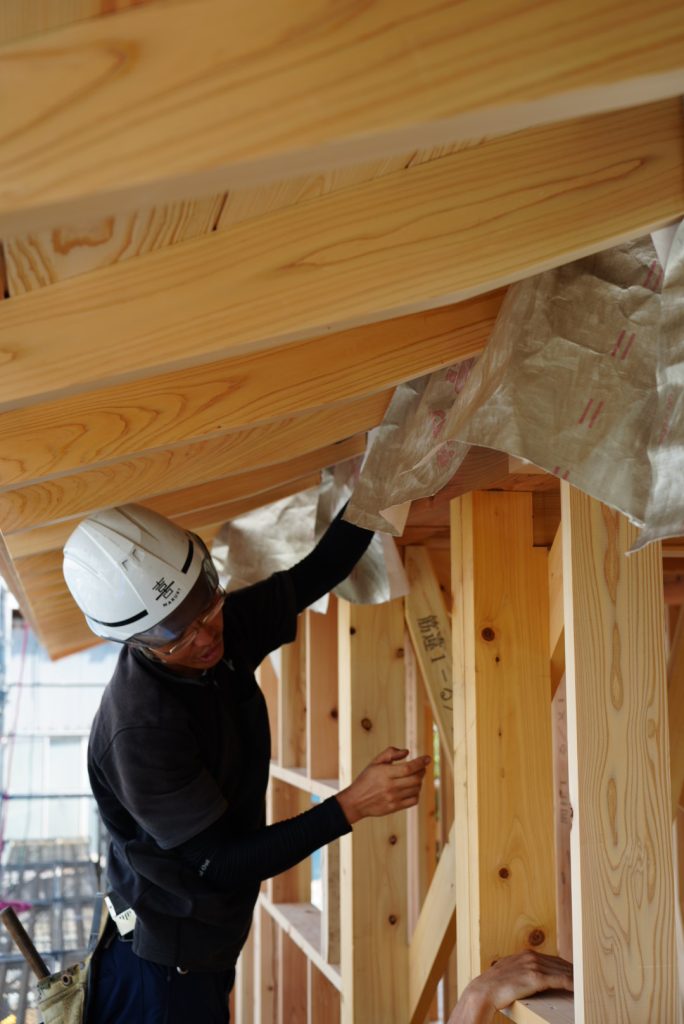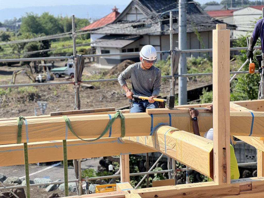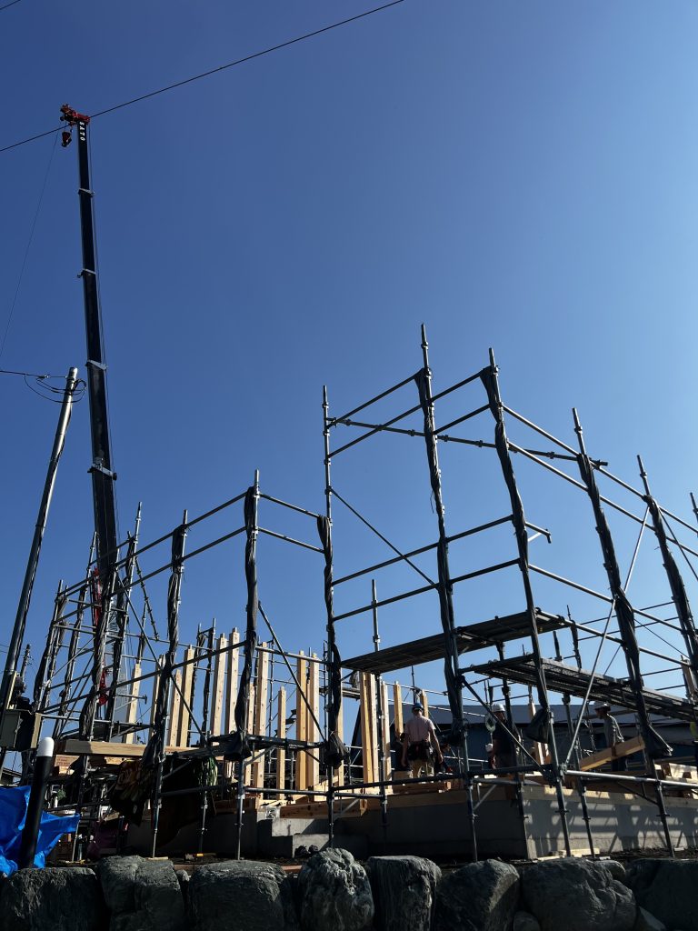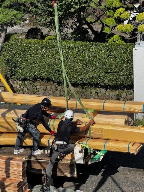 建て方初日はかなり気温が上がり大工さん方は皆さん顔が真っ赤💦