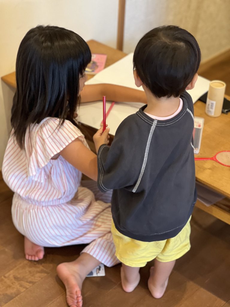お打ち合わせで初めてお会いした時にはまだ抱っこだった下の男の子も今では元気に飛び回るようになり、しっかり者の長女ちゃんとはお打ち合わせの最中にだるまさんがころんだをしたり、計算ごっこをしたり、絵を描いたり…私の似顔絵なんて100倍くらいかわいく描いてくれることもありました。