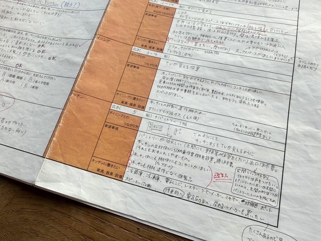 初回お打ち合わせ前 ヒアリングシートには要望がびっしり書かれていました