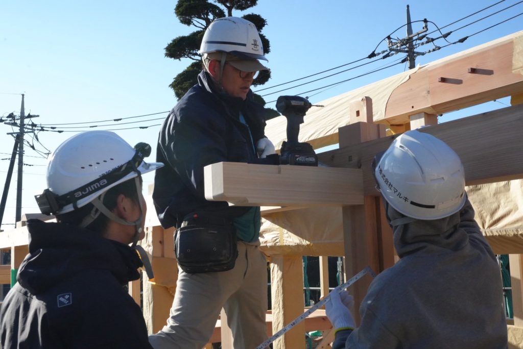 今回の代表の家はプレカットが一切ないので、ひとつひとつ調整しながら組み上げていく様は、とてもプロフェッショナルなものを見せてもらったと感じました。
