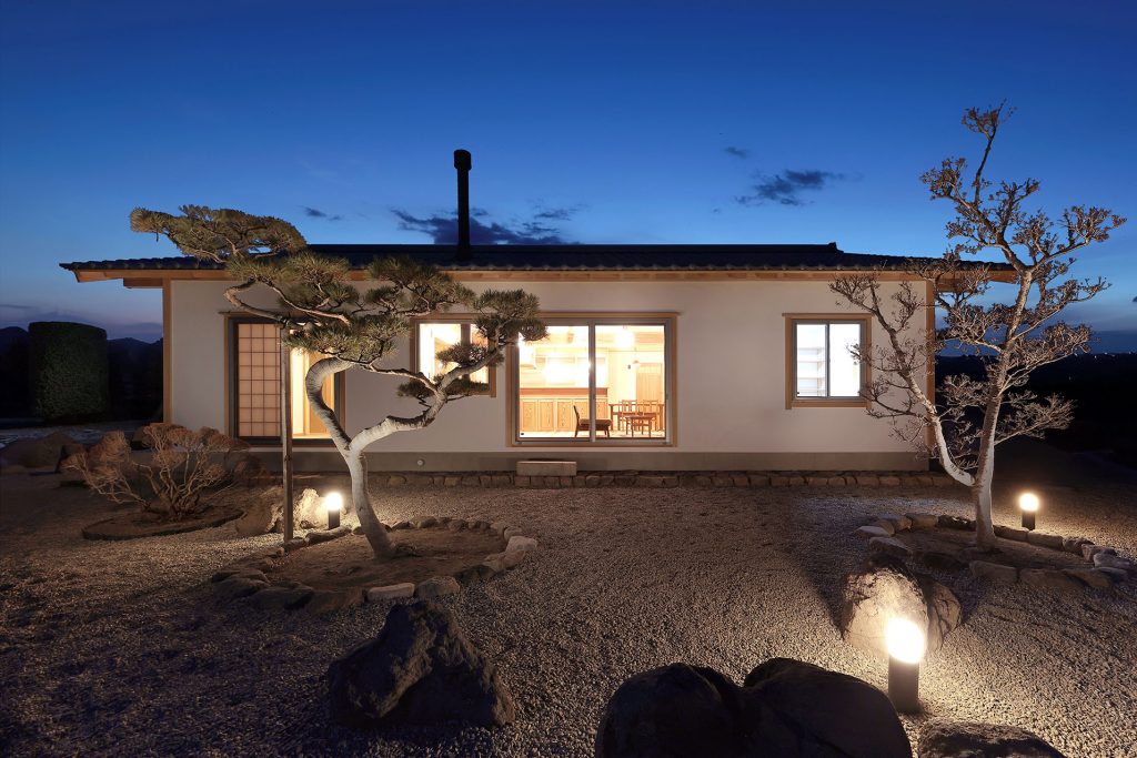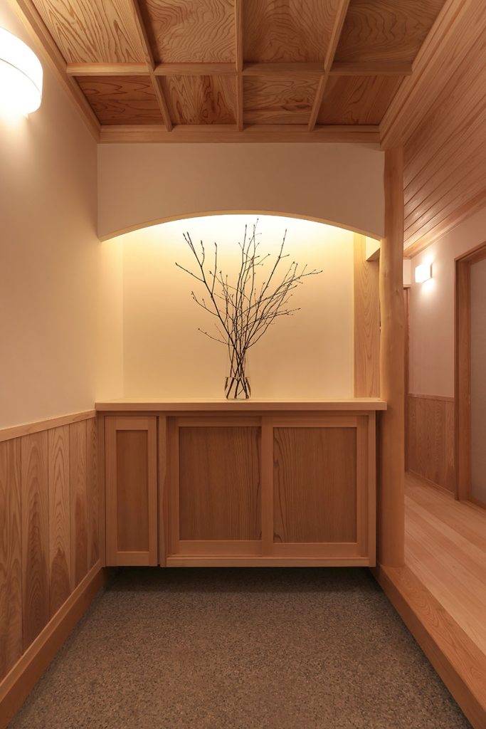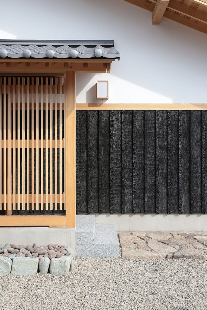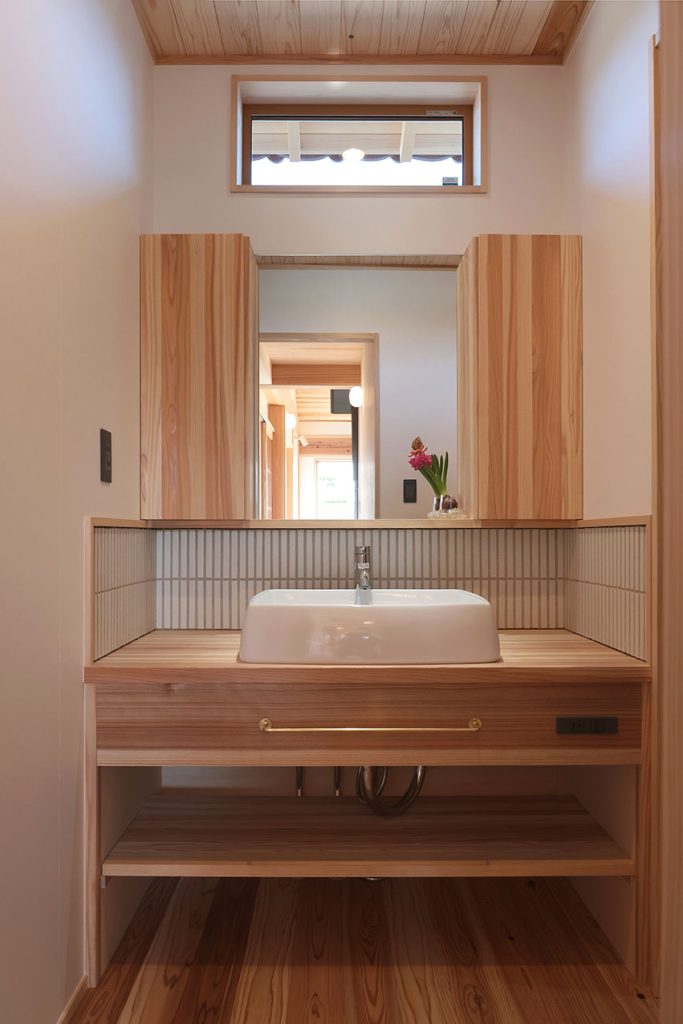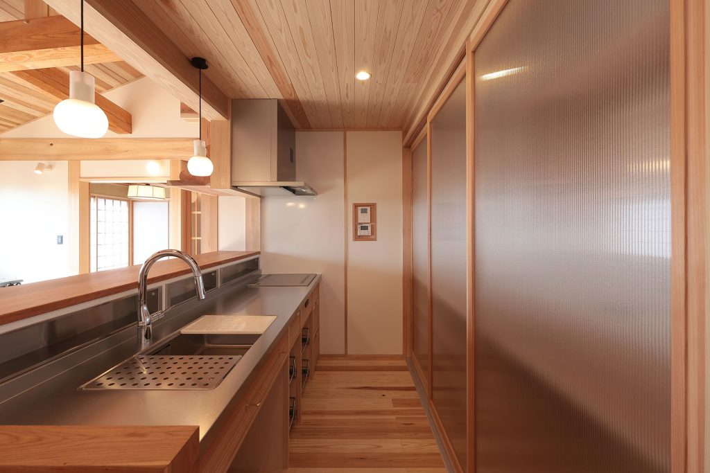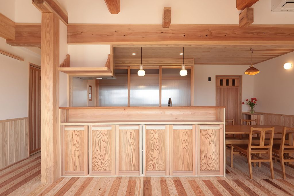 焼杉×漆喰和瓦に鬼瓦をのせた落ち着きと品のある和の佇まい赤松の現しの梁組みが目を引くのびやかな空間玄関と和室には格天井をしつらえ、住まいの要所に日本の住文化を感じられるつくり。